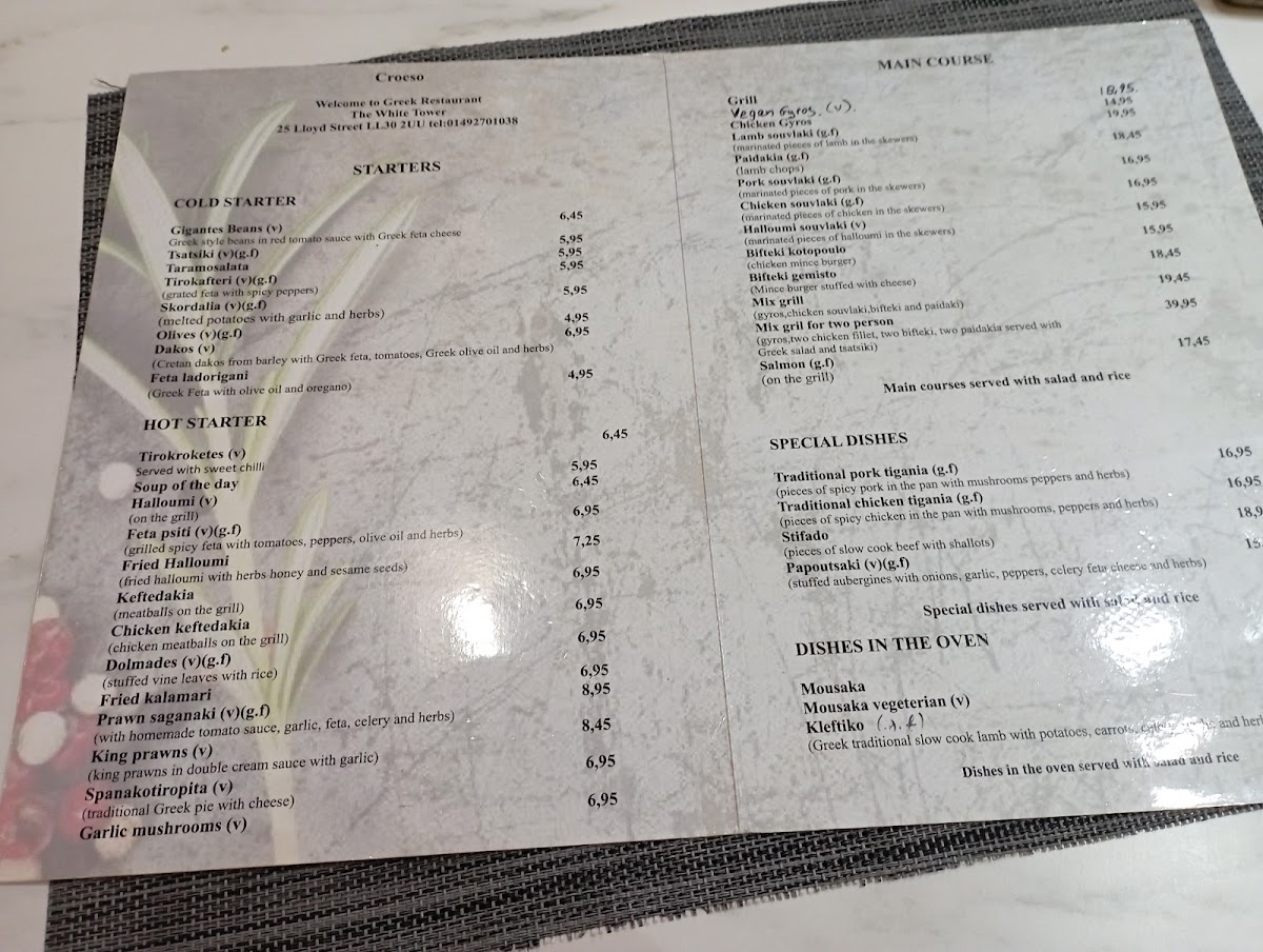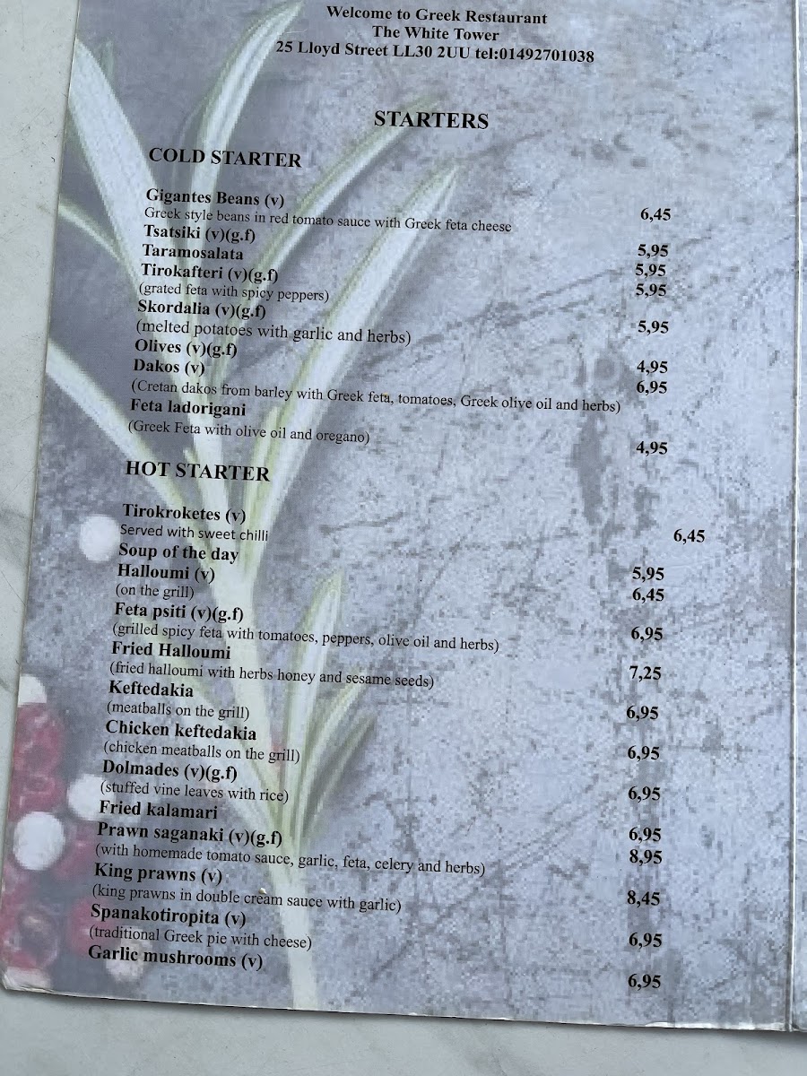Overall, whether you're a local or a visitor strolling through Llandudno, the White Tower Menu offers an inviting experience that combines classic dishes with a fresh, satisfying twist.